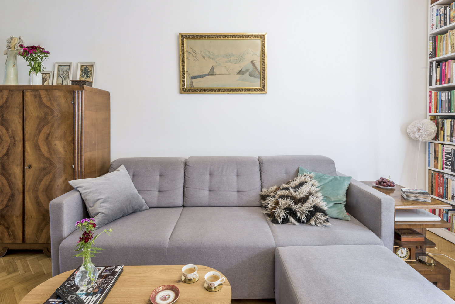 Drzwi, podobnie jak polskie meble w stylu art deco, zostały przywiezione ze Śląska, ze starego mieszkania dziadków właścicieli.